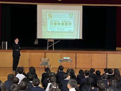 1.2.3年生は、区役所の方から講義がありました。災害時の避難の仕方や家庭で行う備えについて教わりました。