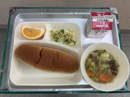 ポトフ・カレーソテー・いよかん・黒糖パン・牛乳です。