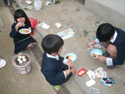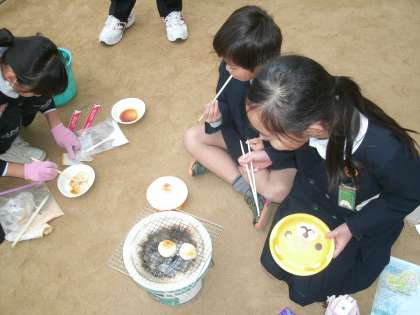 3年生の七輪体験 今日は2組です。おもち おいしかったよ。