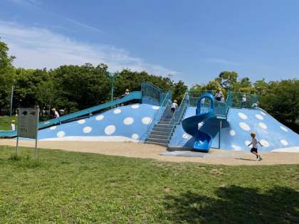 1年生は春の遠足で八幡屋公園に来ました。電車がとても混んでいましたが、みんなかしこく乗車できました。