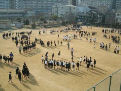 今日は全員運動場に出て、各学級で長なわとびの8の字に挑戦しました。一番たくさん跳んだのは5年2組でした。