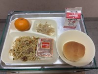 今日の献立は、「まだらのからあげ」「じゃがいもと野菜の煮もの」「プチトマト」「ごはん」「牛乳」です。