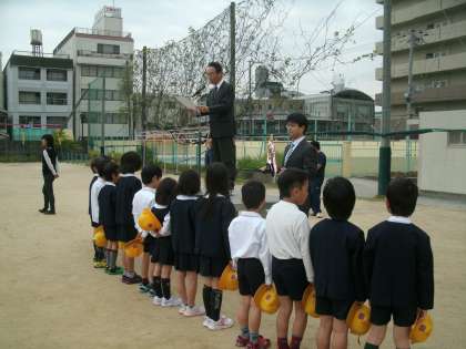 今朝の児童朝会でトロフィーと賞状が校長先生から手渡されました。