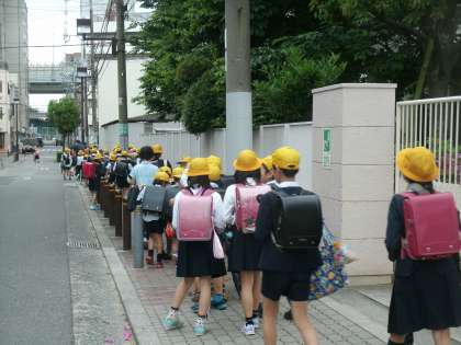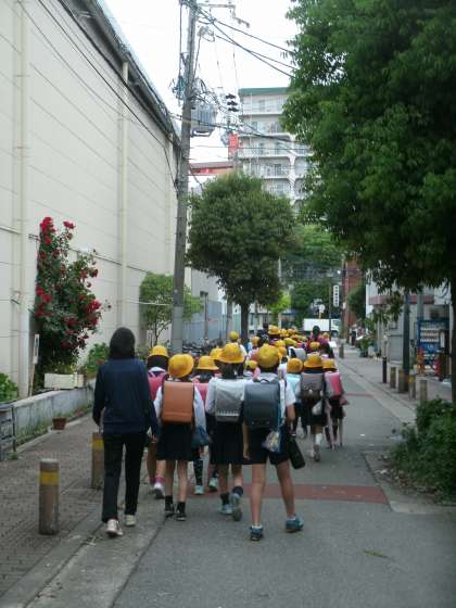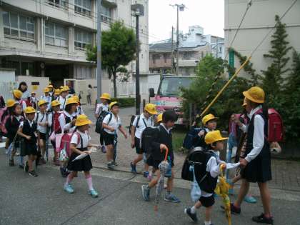 班長、副班長をはじめ、班のメンバーを確認して集団下校をしました。