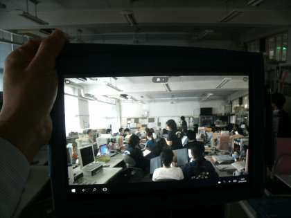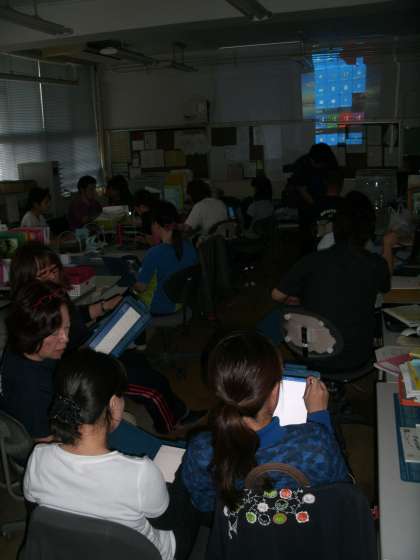 先生たちの研修の様子です。授業で活用するため、今年学校に導入されたタブレット端末の使い方を学びました。