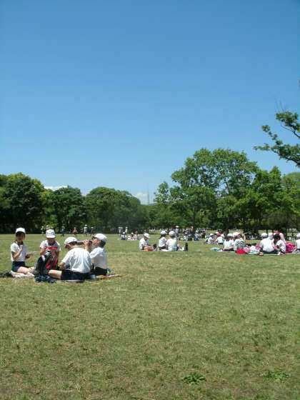 今日もとっても良い天気でした。たくさんの学校が遠足に来ていましたが、万博公園はとても広く、思いっきり体を動かして遊ぶことができました。