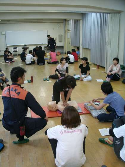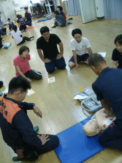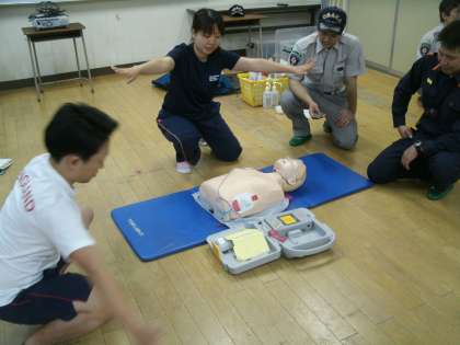 胸骨圧迫 人工呼吸 AEDの使用法などの実技研修を行いました
