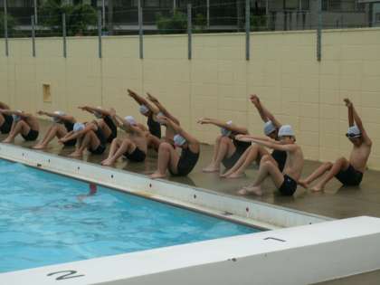 プールサイドでは しっかりと体を伸ばすため