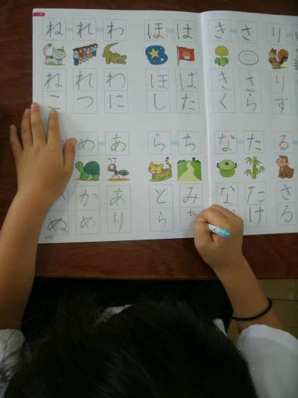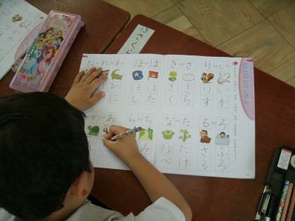 静かにひらがなを練習中