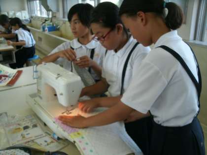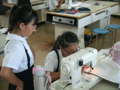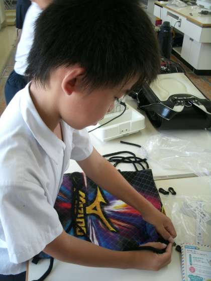 5年生がミシンを使って ナップザックを縫っていました。