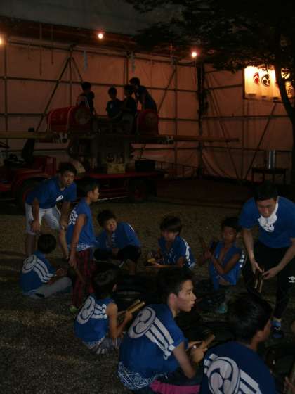 神社から太鼓の音が聞こえてきました。行ってみると枕太鼓の練習をしていました。