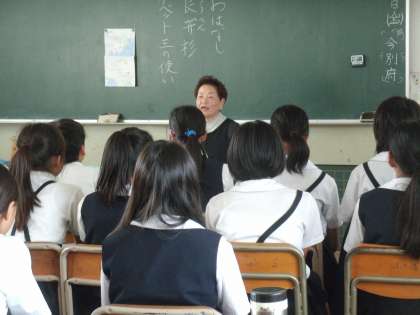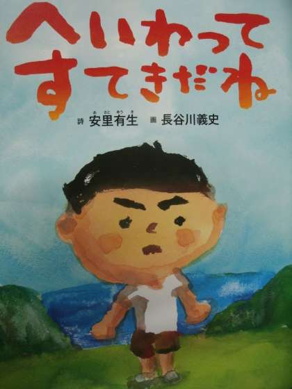 毎年恒例の図書館ボランティア「さざなみ」による「お話し会」です。今日は6年生でした。6年生がヒロシマ修学旅行に向けて平和学習に取り組んでいるということをお伝えしたところ、平和について考える本を一冊紹介してくださいました。この詩は「沖縄慰霊の日」にメッセージとして読み上げられたもので、絵は長谷川義史さんです。