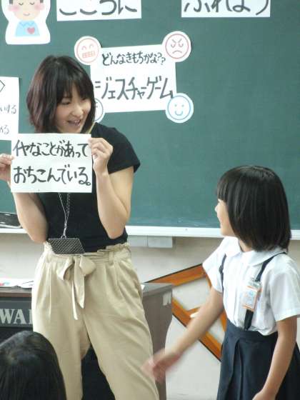 スクールカウンセラーで臨床心理士の月城美咲先生が、今日は2年生の教室にやってきました。月城先生には、いつも弁天小学校のみなさんからの相談を受けていただいています。今日は、2年生にクールカウンセラーについて知ってもらうことから始めました。また、楽しみながらこころや気持ちについて考える授業を行いました。「こころに ふれよう」と題しジェスチャーを使ったゲームをしたり、リフレッシュの方法(体操や呼吸)を教えていただいたりしました。