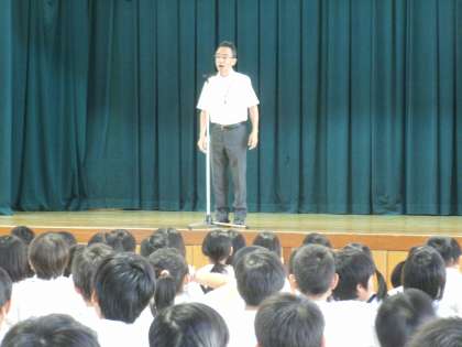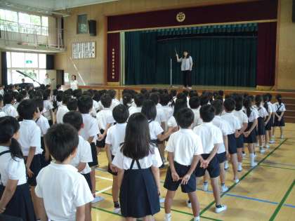 夏休みのくらしについて、注意をきいたあと、元気よく校歌を歌いました。いよいよ明日からは「なつやすみ」です。