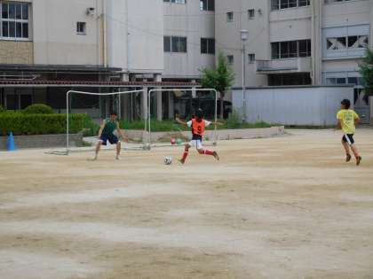 今日は残念ながら雨です。プール開放はありません。なお、サッカーの練習は講堂で行う予定です(写真は昨日のサッカーの練習風景です。)