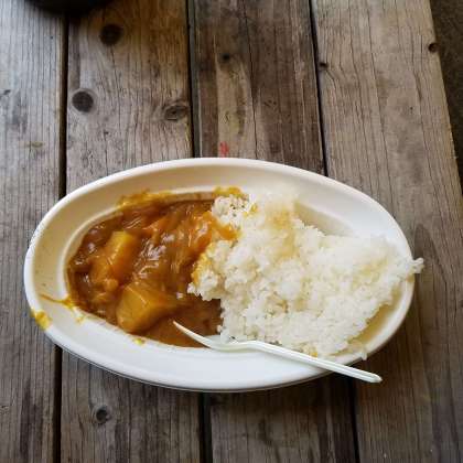 飯盒炊さんの間 雨は降りませんでした。カレーが完成しました。