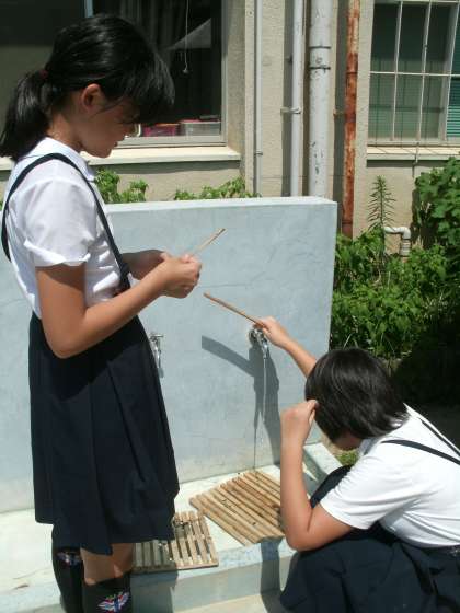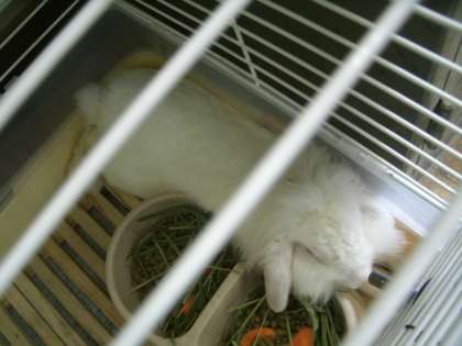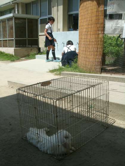 夏休みの間も 飼育栽培員会は当番でウサギの世話をしています 暑い昼間は 涼しい職員室で過ごしています