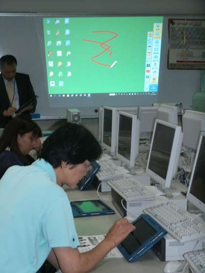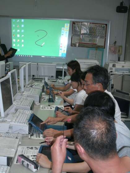 放課後はパソコン室でタブレットの研修です。