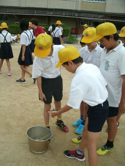 先週、突然雨が降った為にできなかった「石ひろい」を行いました。