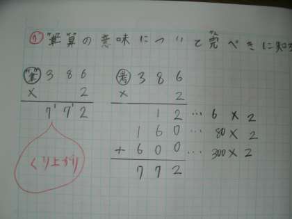 かけ算 筆算を学んでいます