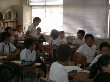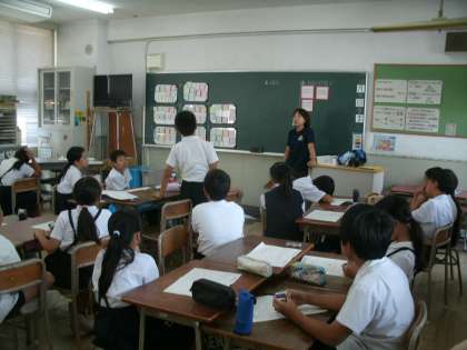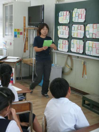 色分けされたカードをもとに グループで話し合い 発表する授業でした
