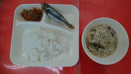 今日の献立は、「焼きししゃも」「にゅうめん」「きんぴらごぼう」「ごはん」「牛乳」です。ししゃもは、日本では北海道の太平洋岸にすむキュウリウオ科の魚です。卵を産むために河口から1〜10キロメートルさかのぼります。給食に出るししゃもは、「カラフトシシャモ(カペリン)」と呼ばれ、北太平洋北部から北極海、北大西洋北部にかけてすんでいます。
