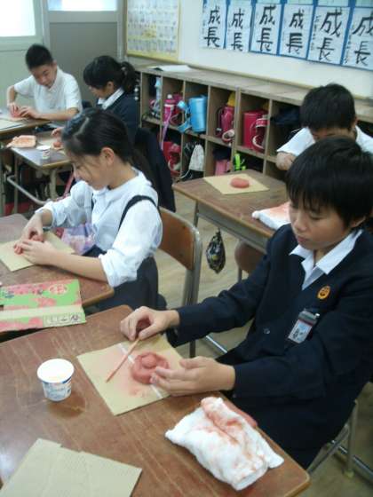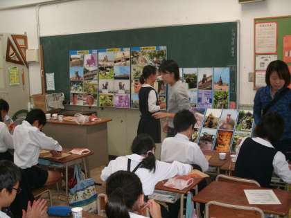 教室の前には 沖縄の屋根シーサーの写真が掲示されています。