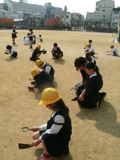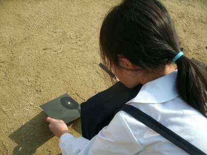 太陽の向きに合わせて 虫眼鏡をかたむけます
