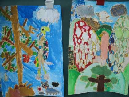 「くじゃくのジャックの だいだっそう」の 物語を 絵にしています。