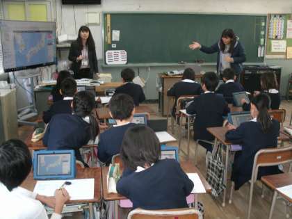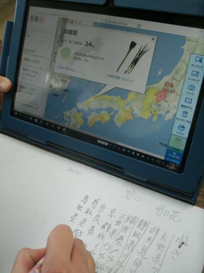 今日、2名のICT支援員に来ていただきました。サポートをしていただきながら、4年生の社会科の授業でタブレットを使用しました。