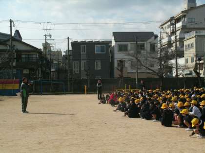避難指示から3分12秒、全員が静かに集合場所に集まりました。