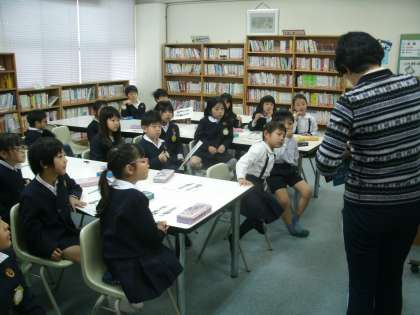 1年3組 学校図書館での授業
