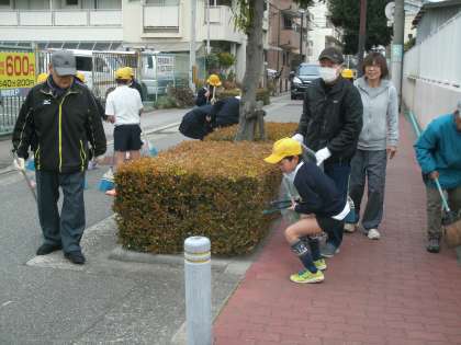 寿楽会の皆さんと学校のまわりを掃除しました。