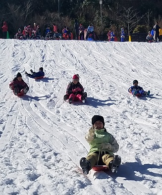 六甲山人工スキー場でそり滑り
