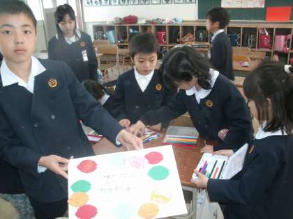 今日は1年生から5年生で 色紙を作りました