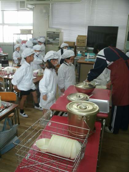先生から指示を受け、牛乳やバターをみんなに届けていました。