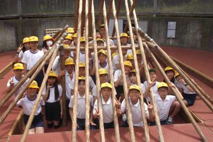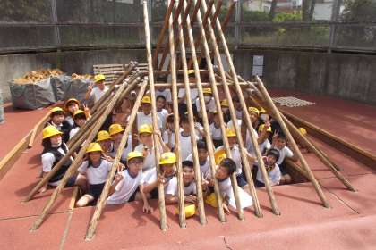みんなで 協力して 竪穴住居をつくろう