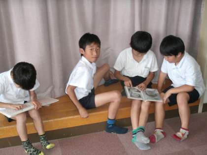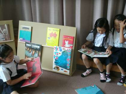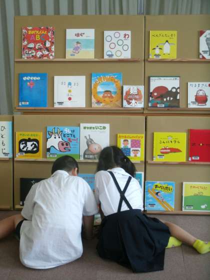 第2音楽室に、港図書館からたくさんの絵本が運ばれてきました。