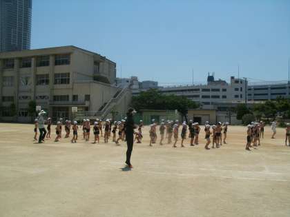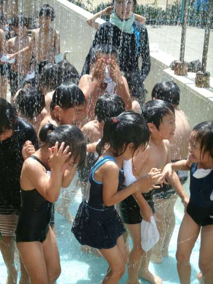 1年生にとっては はじめて入る小学校のプールです