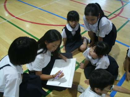 5時間目 講堂で打ち合わせ中