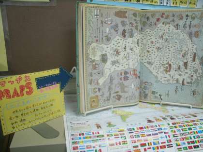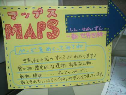 カウンターの横には 図書館補助の新居先生による本の紹介コーナーがあります