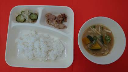 今日の献立は、「鶏肉のてり焼き」「みそ汁」「切り干しだいこんのゆずの香あえ」「ごはん」「牛乳」です。暑い日が続くと、暑さにより食欲がなくなりがちです。また、汗をかくことで水分や栄養素が不足し、「体がだるい」「疲れた」という状態になります。「睡眠を十分とる」「朝ごはんを食べる」「こまめに水分補給をする」で、夏を元気にすごしましょう!