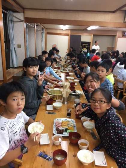 2日目 朝のストレッチ と 朝ごはん の様子です