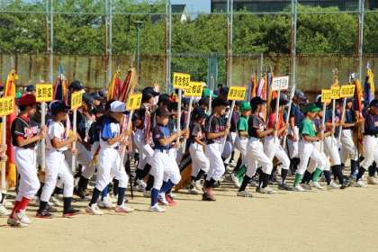 巽東緑地グランドにて大阪市大会が行われ、港区大会で優勝した弁天連合子ども会ソフトボールチームが出場しました。