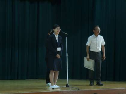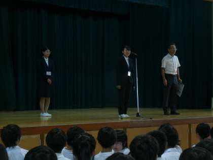 校長先生からのお話のあとは、教育実習生の自己紹介です。