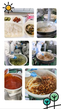 今日の献立は、「鶏肉の甘辛焼き」「みそ汁」「だいこんの煮もの」「ごはん」「牛乳」です。明日は、きのこのドリアが登場します。