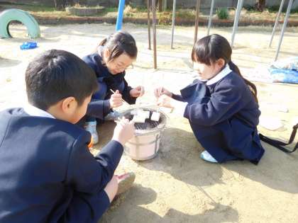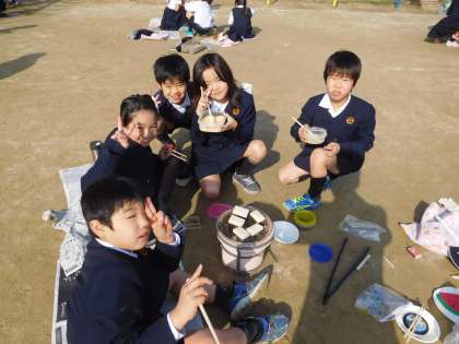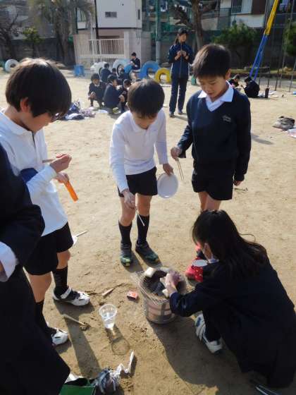 今日は 1組と3組が 七輪を使って 火をおこしました