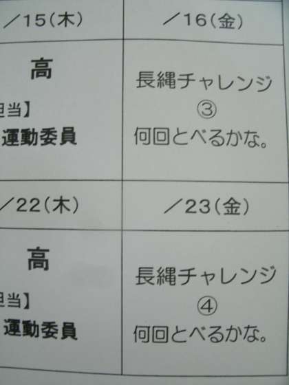 金曜日 一時間目のあとは クラスごとに 運動場で 長なわとびです