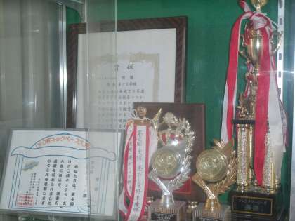 トロフィーは玄関のガラスケースに