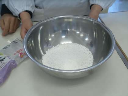 今日は 2組が白玉団子を作りました